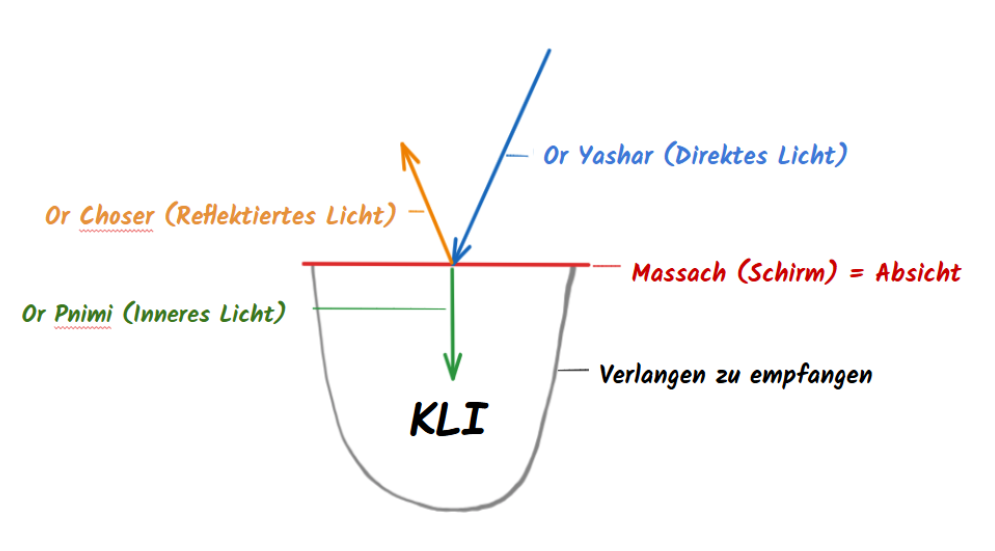 In Das Studium der Zehn Sefirot (Teil 2, Kapitel 1, Punkt 3) steht geschrieben, dass das Or Choser, das vom Massach aufsteigt, „Verbindung“ genannt wird, weil es das obere Licht im Igul [Kreis] so hält und einfängt, dass dort, wo das Or Choser das Höhere Licht nicht bekleidet, dieses Licht aus der Sicht des emanierten Wesens als nicht existent angesehen wird, weil es ohne dieses Gewand, das Or Choser genannt wird, es nicht erreichen kann. (...)
