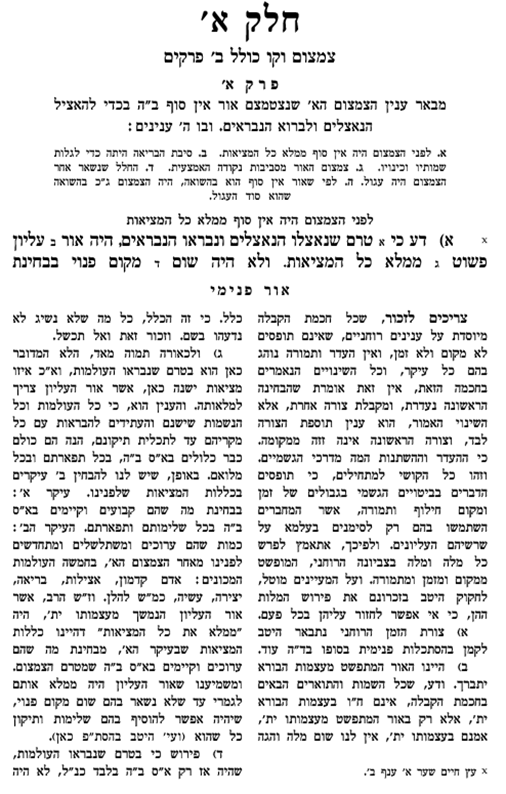Aus diesem Grund habe ich, mit Gottes Hilfe, die Kommentare Panim Me’irot und Panim Masbirot zum Werk Ez Chaim verfasst, um die Leser vor jeglicher Vermaterialisierung zu bewahren.