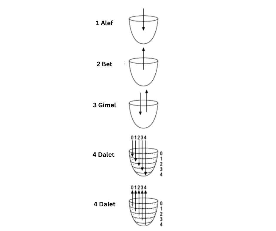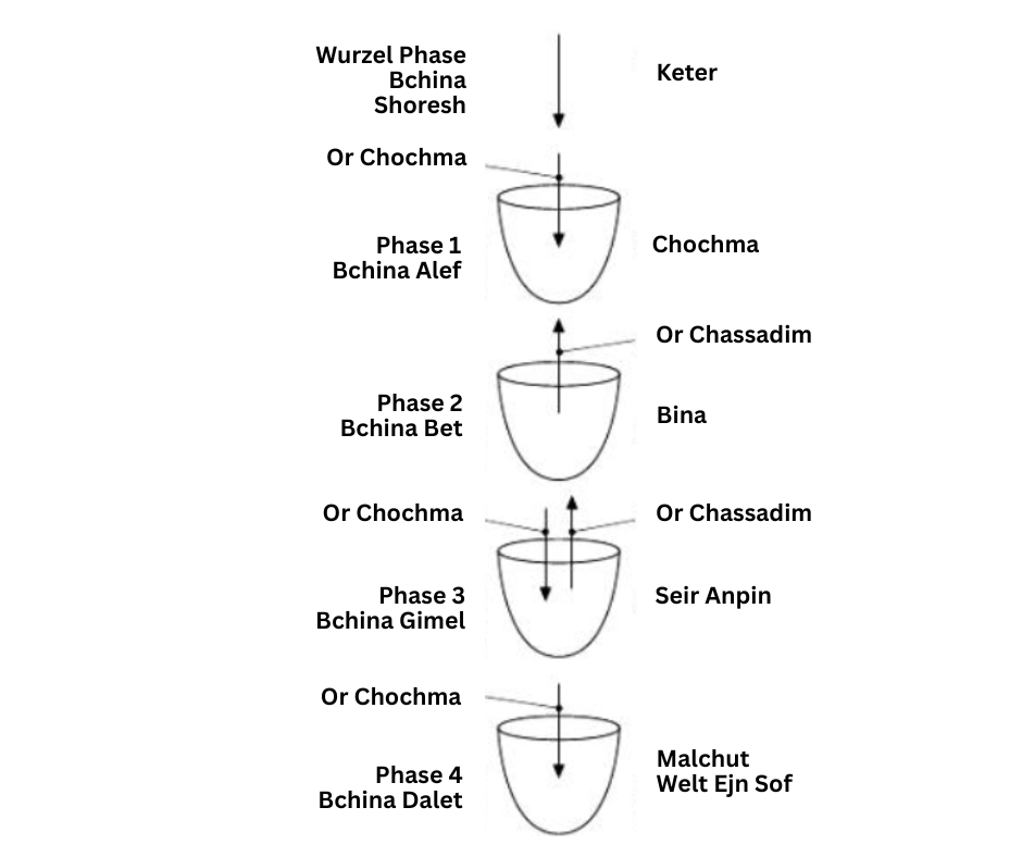 Daher braucht man die vier Unterscheidungen (Dalet Bchinot), die im Namen HaWaYaH enkodiert sind und Chochma, Bina, Tiferet, Malchut heißen. Bchina Alef (Phase Eins), welche Chochma heißt, beinhaltet die Gesamtheit des Ausgeströmten – das Licht und das Kli. In diesem ist das große Verlangen zu empfangen im gesamten Licht enthalten, das Or Chochma (das Licht der Weisheit) oder Or Chaja (das Licht des Lebens) heißt, denn es ist das gesamte Licht des Lebens (Or ha Chaim) im Ausgeströmten, eingekleidet in sein Kli. Diese Bchina Alef wird jedoch weiterhin lediglich als Licht angesehen, und das Kli dieser Stufe ist fast nicht erkennbar, denn es ist mit dem Licht vermischt und verschwindet in ihm wie eine Kerze vor einer Fackel.
