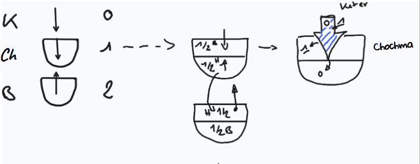 Wenn danach ein dritter Teil entsteht – eine Mischung aus dem ersten und zweiten Teil in ihr, wenn Bina empfangen will, um das Geben zu verwirklichen –, beginnt sie dadurch zu verstehen, was der Schöpfer ist. Dadurch wird sie dem Schöpfer ähnlich. In Bina wird sie dem Schöpfer nur in der Absicht ähnlich. Und im dritten Teil – in Seir Anpin – wird sie dem Schöpfer in der Handlung ähnlich. Das heißt, was tut Bina jetzt? Sie empfängt, sie nimmt dieses erste Verlangen und empfängt, um zu geben. Das heißt, hier gibt es gewissermaßen den ersten Teil – Chochma – und den zweiten Teil – Bina. Sie verwirklicht das Verlangen zu empfangen um des Gebens willen.