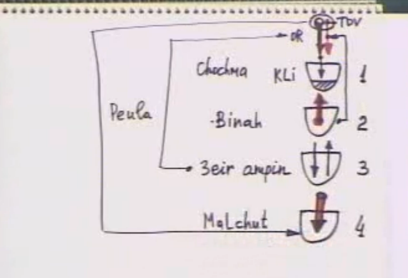 Neben dem Genuss gibt es im Licht auch das Gefühl des Gebers – wer der Geber ist und was seine Natur ist. Daraus entsteht das Verlangen der zweiten Phase, zu geben. Das Kli in der Phase Alef heißt Chochma, und das Kli in der Phase Bet ist Bina.