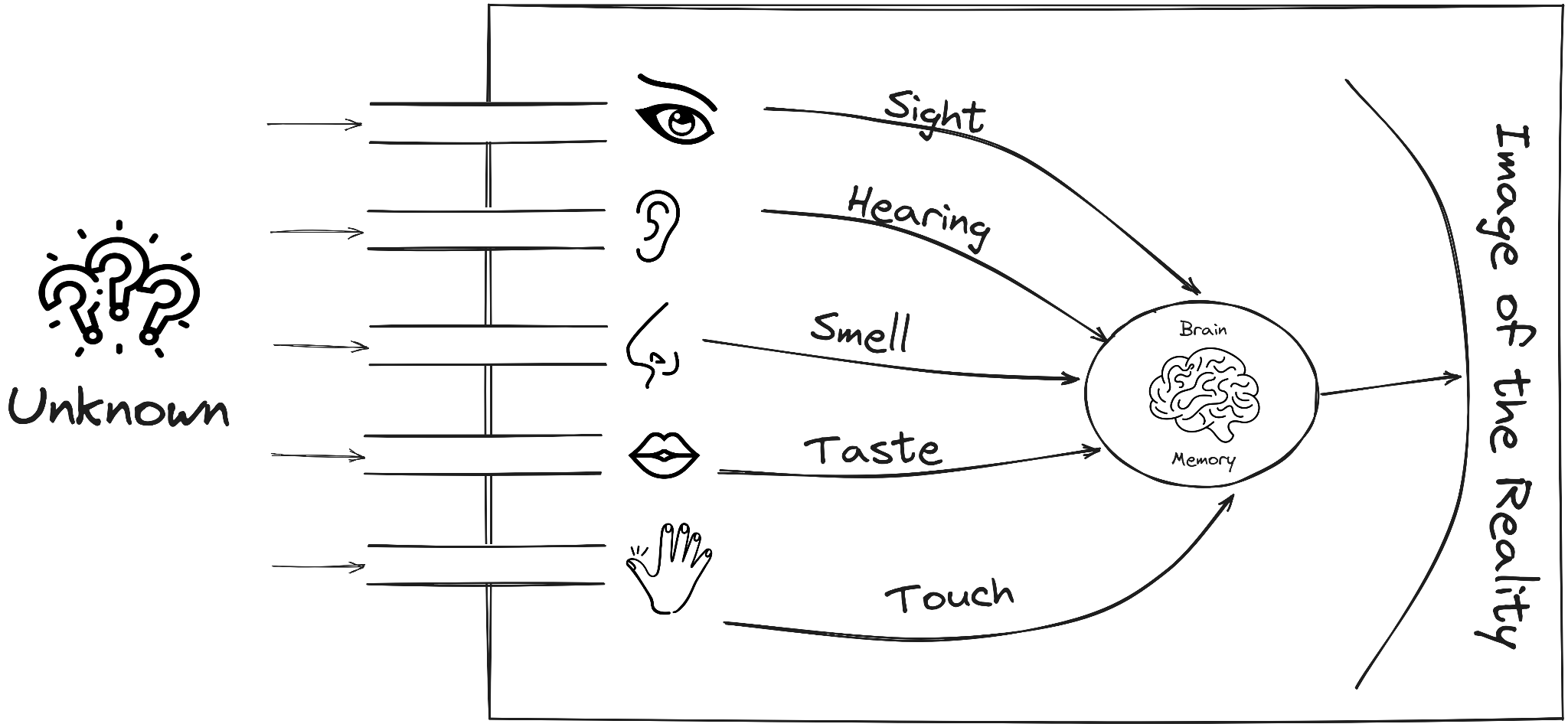 We can see that with a radio receiver, which receives all the signals in the world, the receiver does not create the sounds. Rather, the sound exists in the world, but before we had the receiving device, we did not detect the sounds although they did exist in reality.