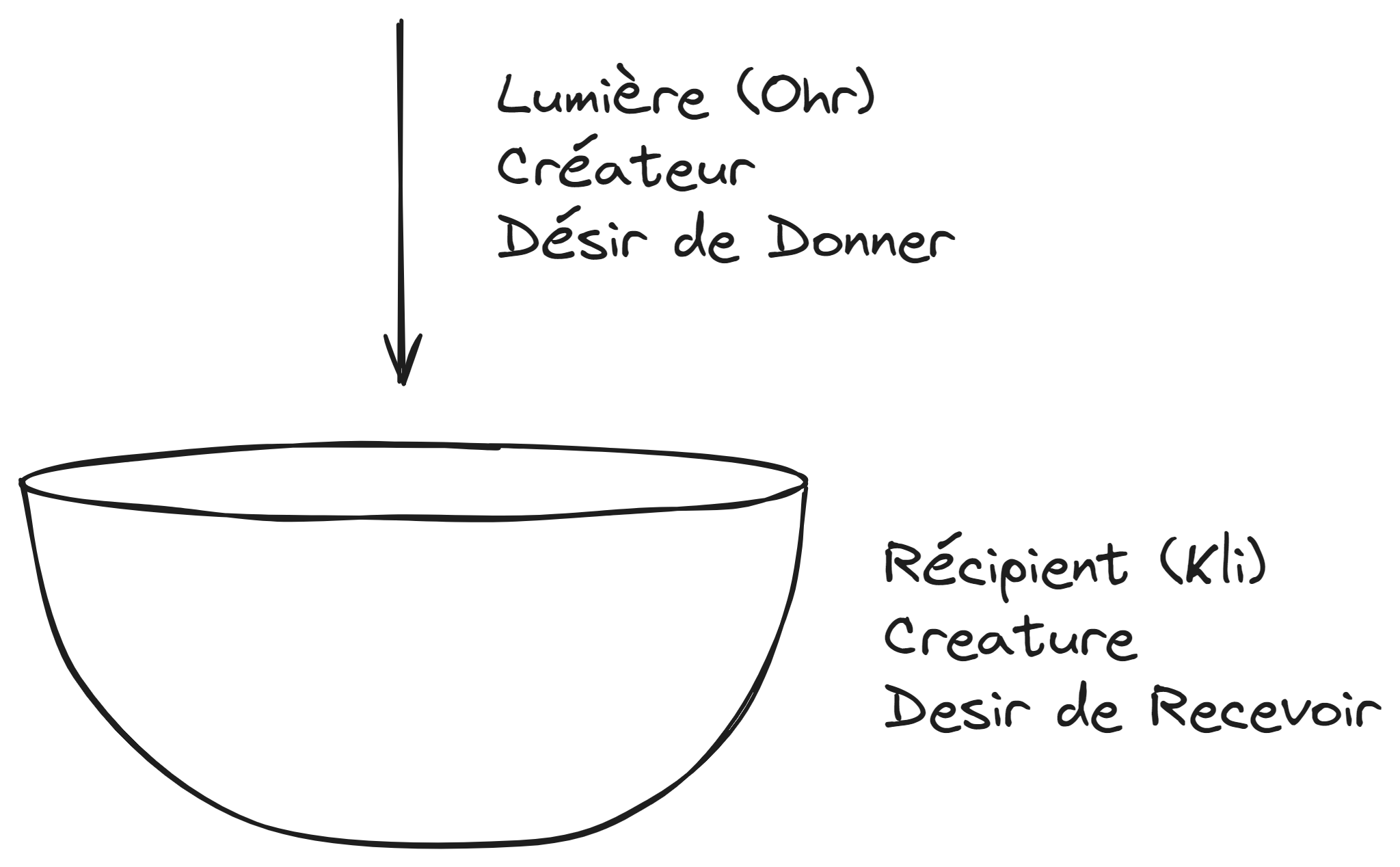 Ainsi, la lumière et le récipient de la phase deux sont complètement différents de ceux de la première phase, puisque le récipient qui s'y trouve est le désir de donner sans réserve. La lumière qu'il contient est considérée comme la lumière de Hassadim, une lumière qui découle de l'adhésion de l'être émané à l'Émanateur, car le désir de donner sans réserve lui procure l'équivalence de forme avec l'Émanateur, et dans la spiritualité, l'équivalence de forme est l'adhésion.