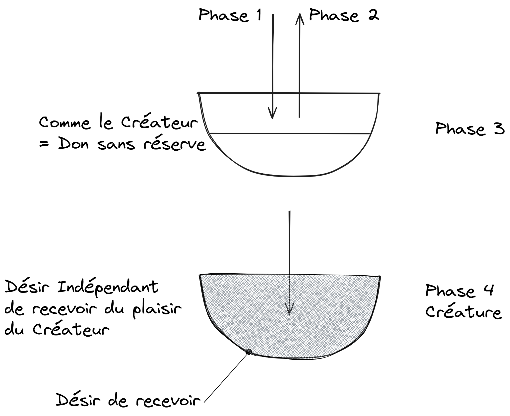 Elle est suivie de la deuxième phase, puisqu'à son terme, le récipient de Hokhma s'intensifie en équivalence de forme avec la lumière supérieure qui l'habite. Cela signifie qu'un désir de donner sans réserve à l'Émanateur s'éveille en lui, selon la nature de la lumière en lui, qui est entièrement destinée au don sans réserve.