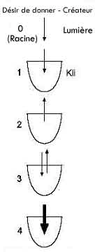 Dans le schéma 1, la Phase Trois est représentée par un Kli doté de deux flèches, une pointant vers le haut et l’autre vers le bas. La flèche descendante indique que la Phase Trois reçoit, comme dans la Phase Un, et la flèche montante indique que son intention est de donner, comme dans la Phase Deux.