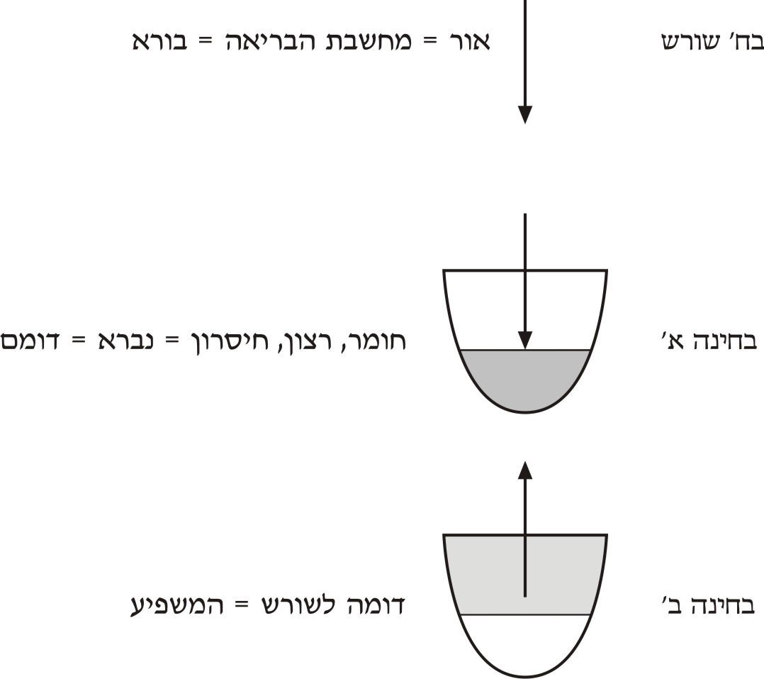 באופן שהאור וכלי שבבחי"ב משונים לגמרי מבחי"א כי הכלי שבה הוא הרצון להשפיע והאור שבה נבחן לאור החסדים, שפירושו אור הנמשך מכח הדבקות של הנאצל בהמאציל. כי הרצון להשפיע גורם לו השואת הצורה למאציל, והשואת הצורה ברוחניות היא דבקות, כמ"ש להלן.
