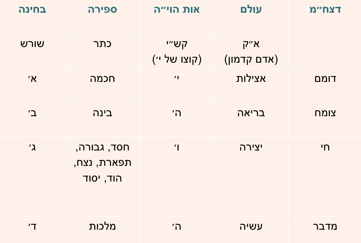 ה) ולפיכך, צריכים לד' בחינות שבשם הוי"ה, הנקראות חכמה בינה ת"ת (תפארת=ז״א=זעיר אנפין) מלכות.