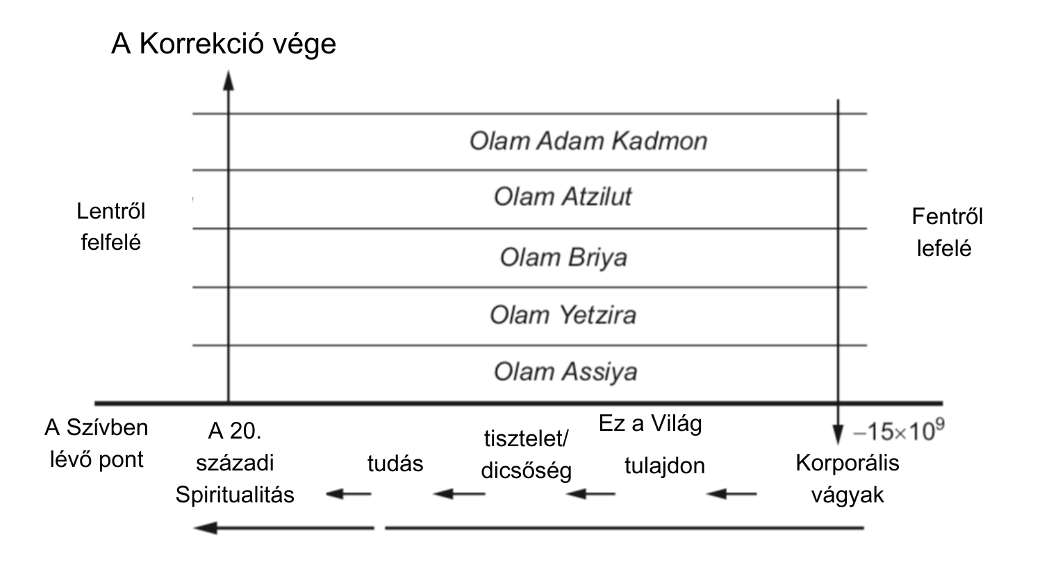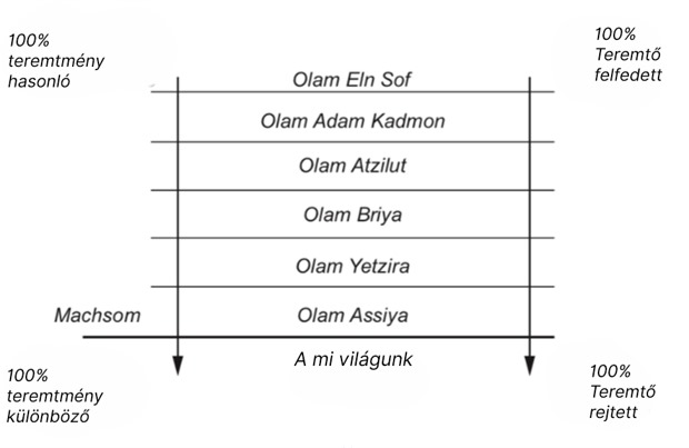 - A spirituális világok fejlődése a Kabbala Bölcsessége szerint; az „ásványi”, a „növényi”, az „állati” és a „beszélő” szint fejlődése a mi világunkban.