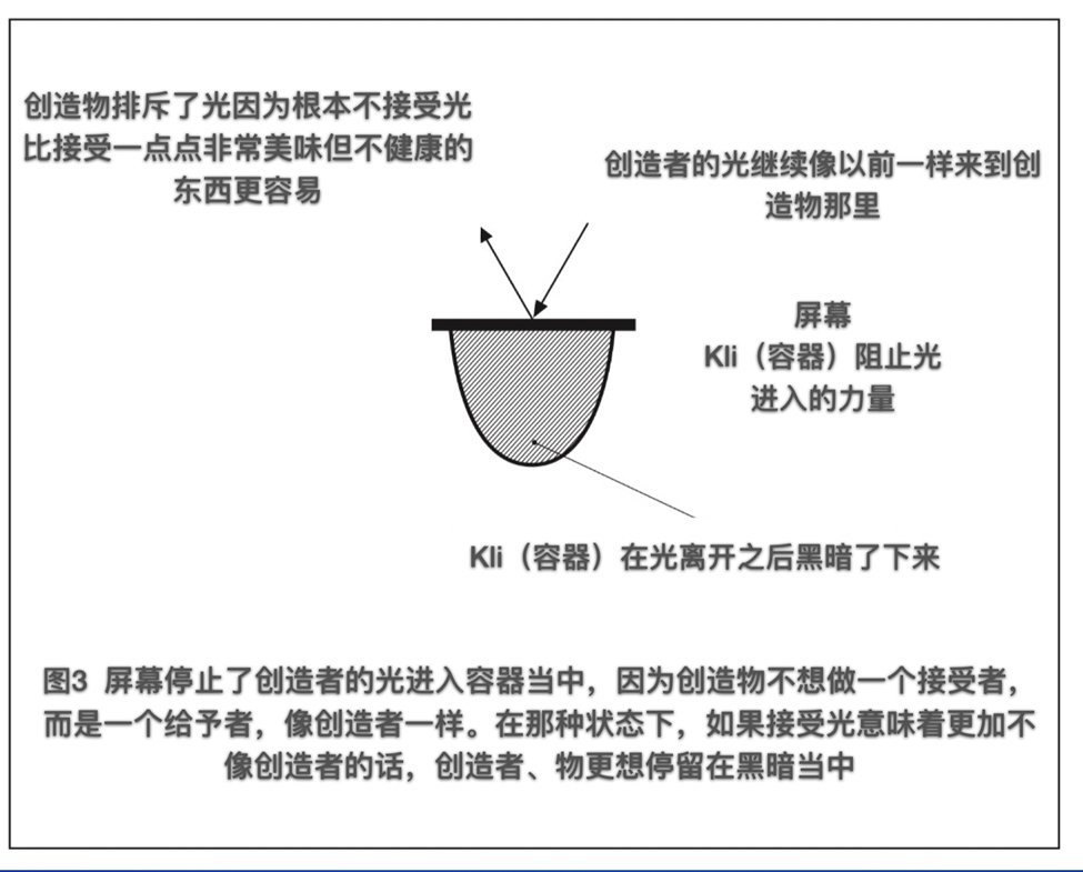 图3 这个Masach屏幕是将这个Kli(容器)为了满足创造者所能接受的光(内部之光)与那些为了同样的目的这个Kli(容器)暂时还不能接受的光(环绕之光)分开的一条线。